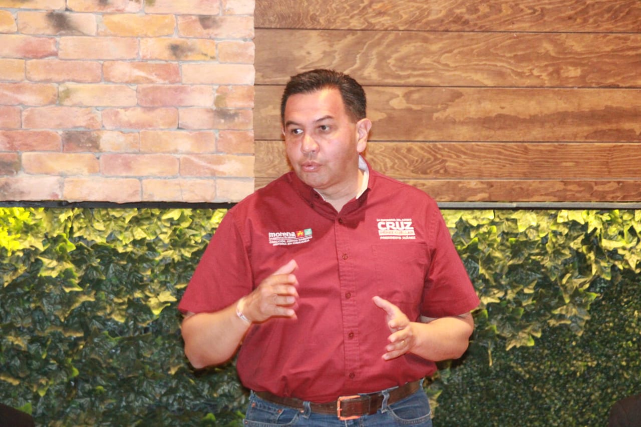 CD. JUAREZ, CHIH.-Si ves a la ciudad como un botín, la vas a saquear, si la ves como tu casa la vas a cuidar”, les dijo Cruz Pérez Cuéllar a decenas de jóvenes que se reunieron en la casa de campaña para llevar a cabo un foro con el candidato a la Presidencia Municipal por Morena en la Coalición Juntos Haremos Historia en Chihuahua.