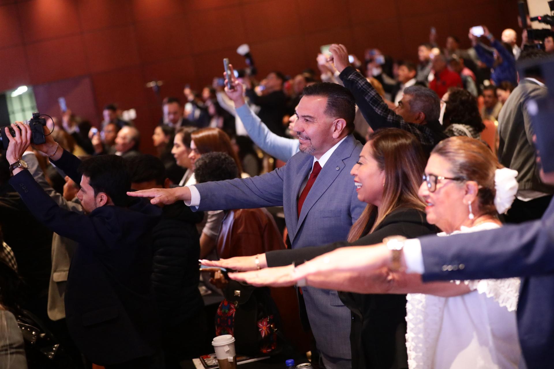 “Bienvenidas todas y todos a esta toma de protesta, a trabajar muy duro bajo el liderazgo de nuestra presidenta Claudia Sheinbaum y todo el éxito para ella”, expresó el alcalde.