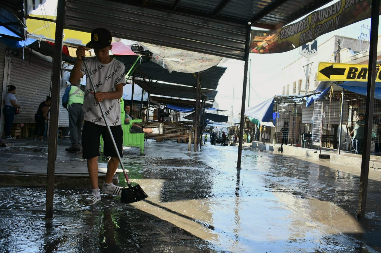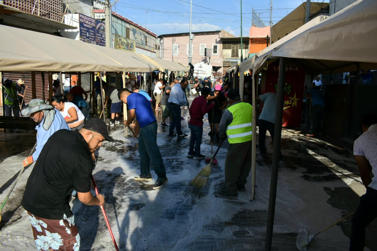 “Estamos contando con cuatro pipas de agua tratada de la Dirección de Parques y Jardines; empezamos las labores desde las 8:00 de la mañana y estaremos hasta después de las 11:00, el objetivo no es interrumpir la actividad comercial de los locatarios, sino unirnos todos por el mismo objetivo, la limpieza de la zona”, explicó.