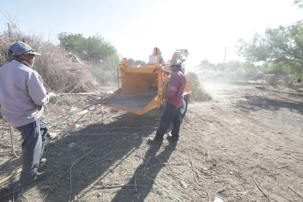 CD. JUAREZ, CHIH.- La Dirección de Parques y Jardines realizó la trituración de ramas acopladas en el Vivero II de El Chamizal, con el fin de continuar con el proceso de preparación de materia orgánica para mejorar el suelo de parques públicos y camellones de la ciudad.