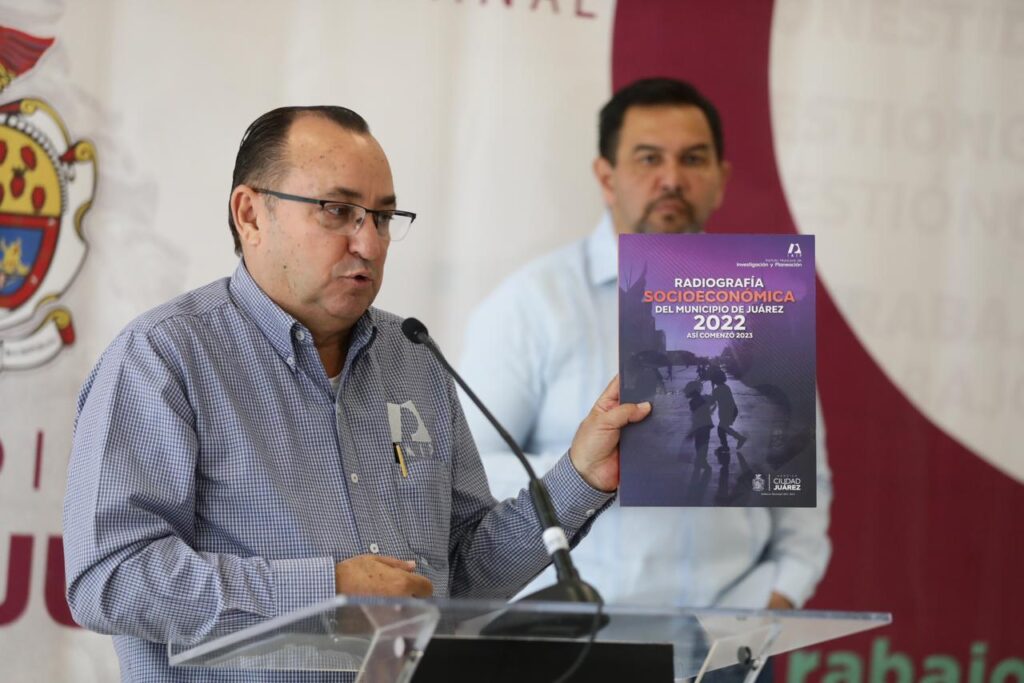 CD. JUAREZ, CHIH.- En el marco de la conferencia de prensa semanal que ofrece el Presidente Municipal, Cruz Pérez Cuéllar, se llevó a cabo la presentación de la Radiografía Socioeconómica del Municipio de Juárez 2022, así comenzó el 2023, elaborada por el equipo técnico de profesionistas que labora en el Instituto Municipal de Investigación y Planeación (IMIP).