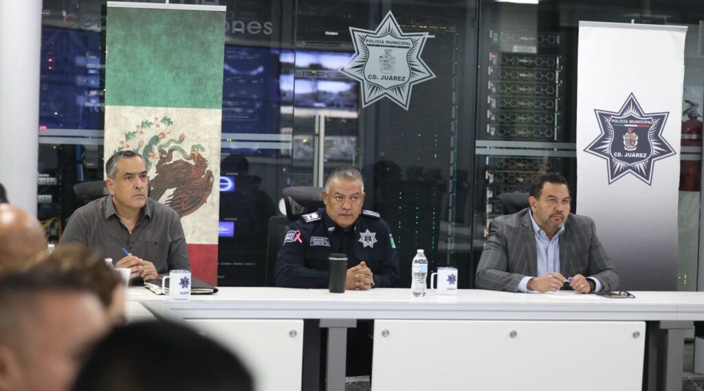 CD. JUAREZ, CHIH.- El Presidente Municipal, Cruz Pérez Cuéllar, encabezó la reunión de la Mesa de Coordinación para la Construcción de la Paz, donde las dependencias de Seguridad Pública de los tres órdenes de Gobierno dan a conocer sus acciones.
