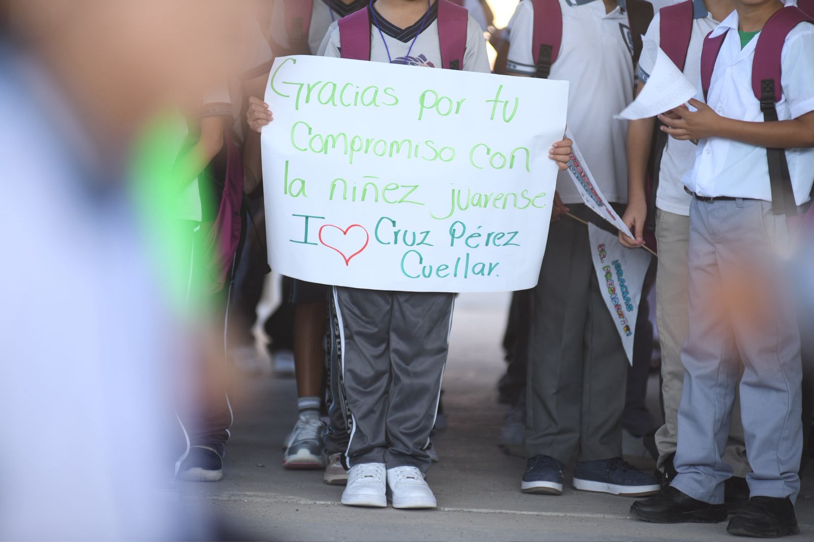CD. JUAREZ, CHIH.- El Presidente Municipal, Cruz Pérez Cuéllar, inició este martes la entrega de mochilas, loncheras y útiles escolares a estudiantes de educación básica, en el marco del programa de apoyo a la economía familiar.