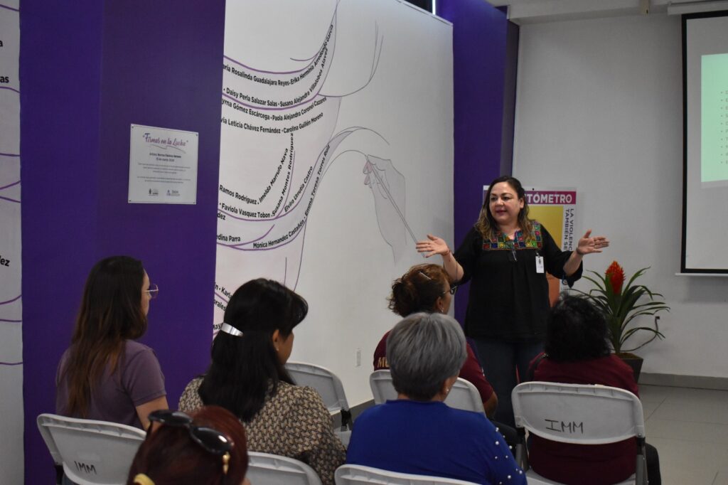 Por ello, se les proporcionó información sobre tipos y modalidades de la violencia, las pautas de actuación y un violentómetro, material gráfico informativo para identificar de manera visual las manifestaciones de la violencia y el riesgo que podrían representar. Asimismo, se socializaron los servicios que ofrece el IMM a través del área jurídica.
