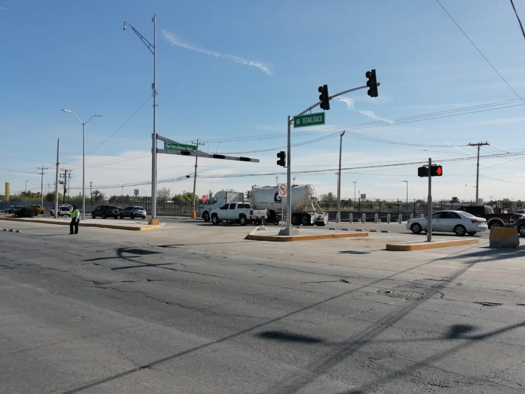 CD. JUAREZ, CHIH.- La Coordinación General de Seguridad Vial habilitó el cruce de la calle Pedro Meneses Hoyos y avenida Tecnológico, a un costado del Parque Central, luego de realizarse los trabajos de programación y sincronización de semáforos.