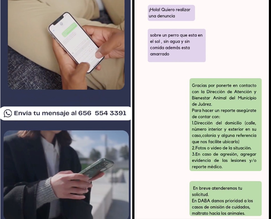 CD. JUAREZ, CHIH.- La Dirección de Atención y Bienestar Animal (DABA) emite indicaciones para que las personas que quieran denunciar casos por maltrato animal, pueden hacerlo a través de la aplicación WhatsApp.