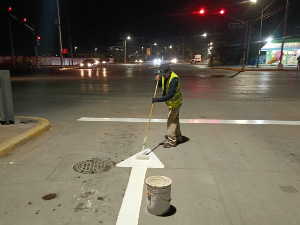 CD. JUAREZ, CHIH.- La Coordinación General de Seguridad Vial, a través del área de Control de Tráfico, continúa con las acciones de mantenimiento preventivo de señalización horizontal en distintos puntos de la ciudad, con el propósito de mejorar la visibilidad de los cruces, delimitar zonas de seguridad y fortalecer la movilidad de peatones y conductores.