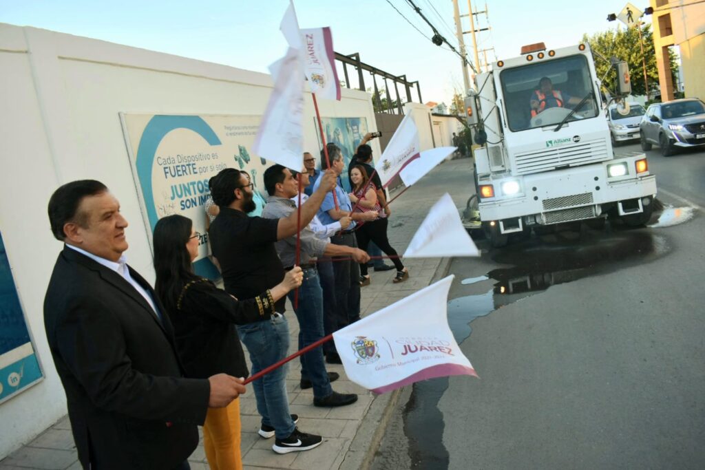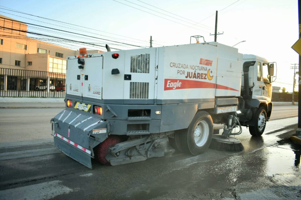 CD. JUAREZ, CHIH.- La Dirección General de Servicios Públicos llevó a cabo la Cruzada Nocturna en el corredor comercial Pedro Rosales de León.