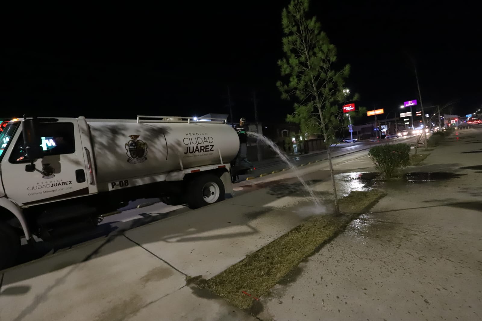 CD. JUAREZ, CHIH.- A fin de mantener en buen estado los corredores comerciales y reforzar el sentido de comunidad y corresponsabilidad en el cuidado del entorno, la Dirección General de Servicios Públicos Municipales, llevó a cabo la edición número 35 de la Cruzada Nocturna, en el corredor comercial del bulevar Manuel Gómez Morín.