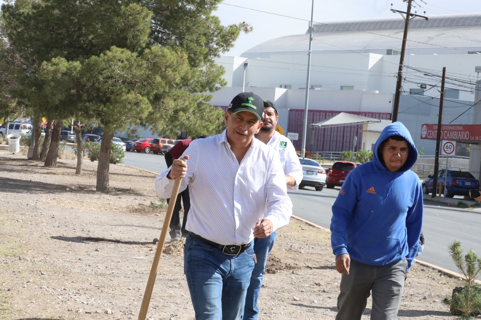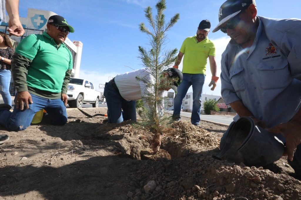 CD. JUAREZ, CHIH.-En una acción conjunta entre el diputado federal Alejandro Pérez Cuéllar y la Dirección de Parques y Jardines del Gobierno Municipal, se llevó a cabo una jornada de forestación en el camellón central de la avenida Abraham Lincoln.