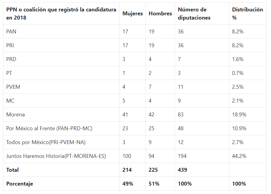 Vencido el plazo, 439 diputadas y diputados presentaron su manifestación de intención para reelegirse en el cargo, de las cuales el 49 por ciento, es decir 214 son mujeres y el 51 por ciento restante son hombres (225).
