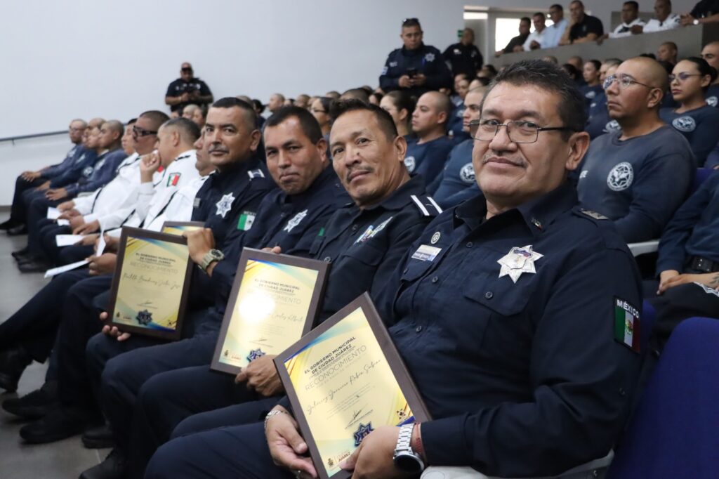 El secretario de Seguridad Pública Municipal, César Omar Muñoz Morales, agradeció el trabajo de los elementos jubilados, por dedicar una gran parte de su vida a la corporación, y felicitó a los agentes reconocidos, exhortándolos a continuar trabajando con dedicación y responsabilidad, poniendo de manifiesto su profesionalismo para la protección y bienestar de la comunidad juarense.