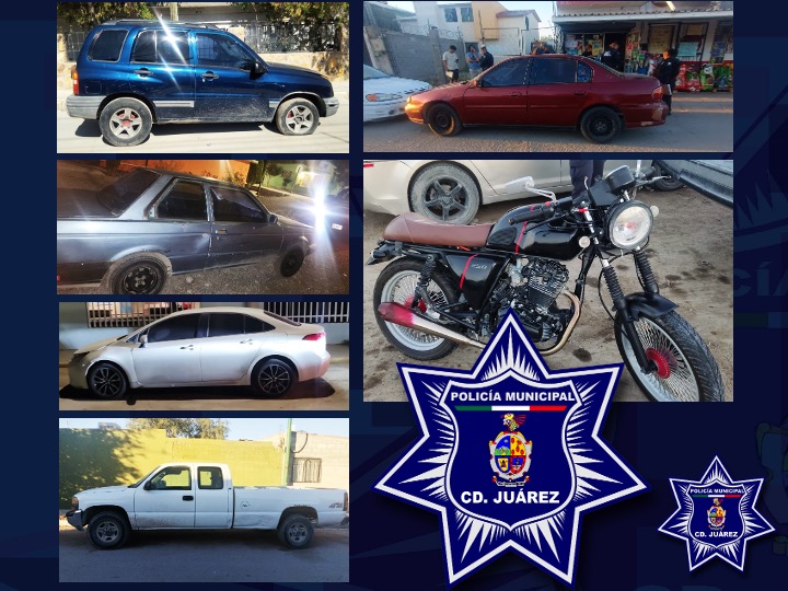 CD. JUAREZ, CHIH.- Elementos de la Secretaría de Seguridad Pública Municipal, adscritos a los distintos distritos policiales, durante este fin de semana lograron la recuperación de siete vehículos que cuentan con reporte de robo de días o meses atrás.