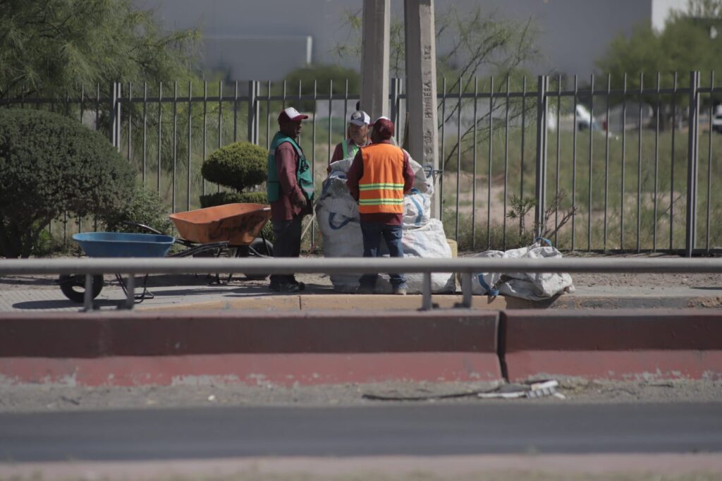 CD, JUAREZ, CHIH.- Como parte de las acciones permanentes para mejorar la imagen urbana, la Dirección General de Servicios Públicos, a través de la Dirección de Limpia, mantiene trabajos continuos de limpieza en el distribuidor vial Manuel Talamás Camandari.