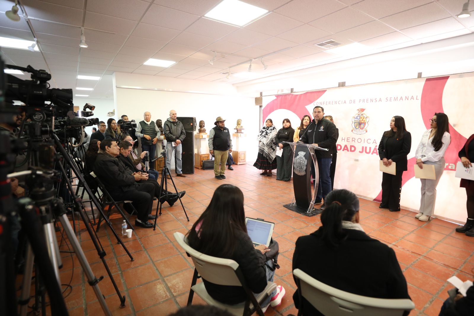 CD. JUAREZ, CHIH.- En el marco de la conferencia de prensa que ofrece cada semana el Presidente Municipal, Cruz Pérez Cuéllar, se informó que las obras de construcción de puentes e imagen urbana del distribuidor vial Talamás Camandari registra ya un avance del 28 por ciento.