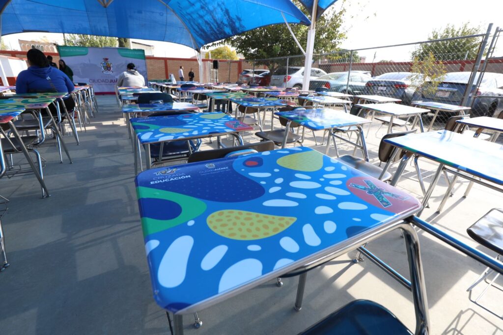 A la entrega de rehabilitación acudió Alejandra Núñez, representante de la asociación Vamos por Juárez, quienes hicieron la donación de más de 70 mesabancos para la escuela; el coordinador de Infraestructura Educativa del Municipio, Ismael Rueda y el subdirector de Educación del Municipio, Ramón Gómez.