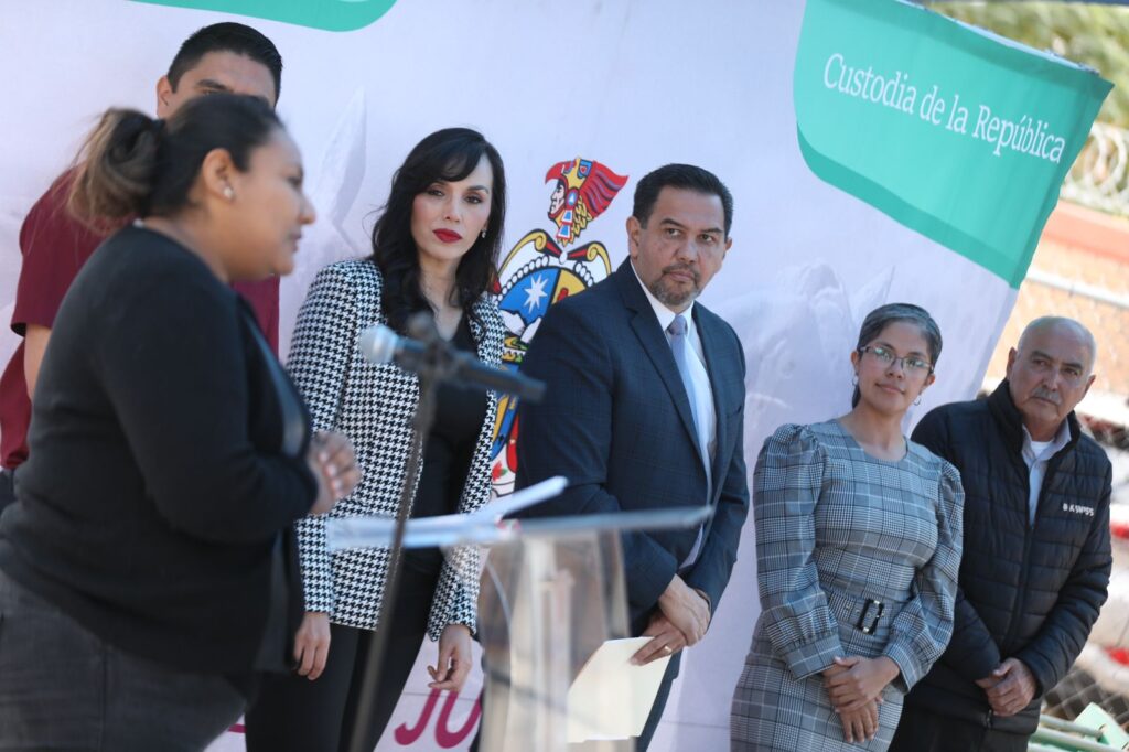 A la entrega de rehabilitación acudió Alejandra Núñez, representante de la asociación Vamos por Juárez, quienes hicieron la donación de más de 70 mesabancos para la escuela; el coordinador de Infraestructura Educativa del Municipio, Ismael Rueda y el subdirector de Educación del Municipio, Ramón Gómez.