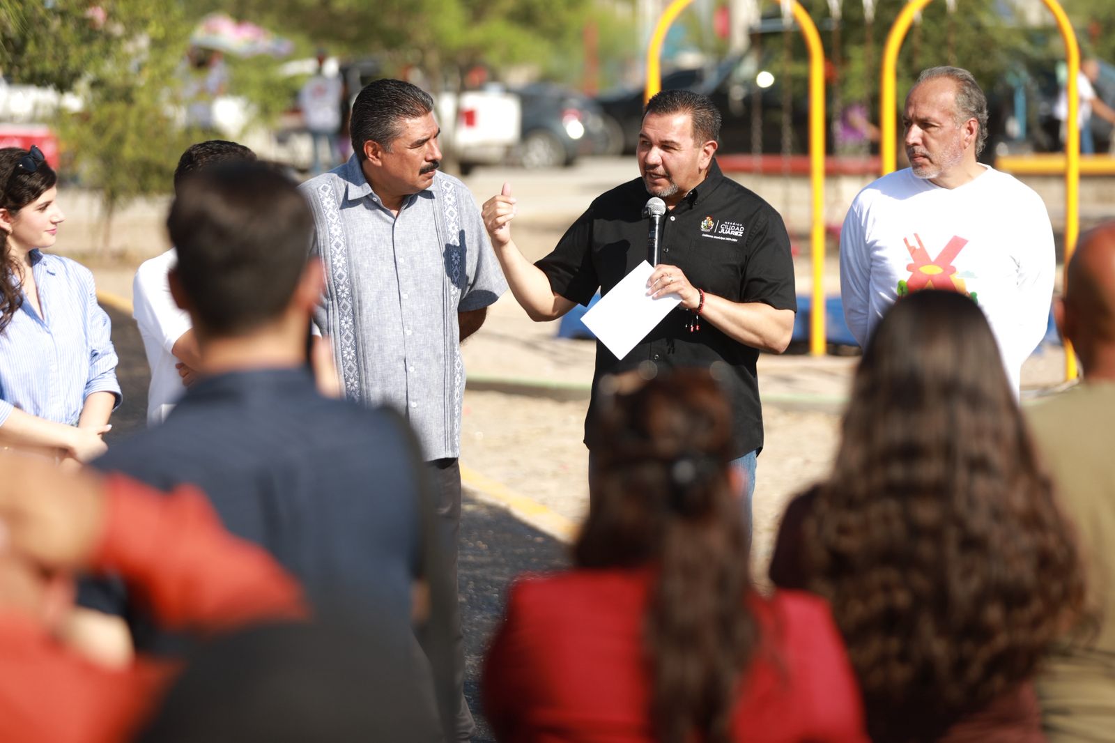 Durante el evento para entregarlo a la comunidad, el Presidente Municipal, Cruz Pérez Cuéllar destacó la importancia de la colaboración entre iniciativa privada, sociedad y Gobierno para transformar espacios públicos deteriorados en áreas seguras y funcionales para las familias.