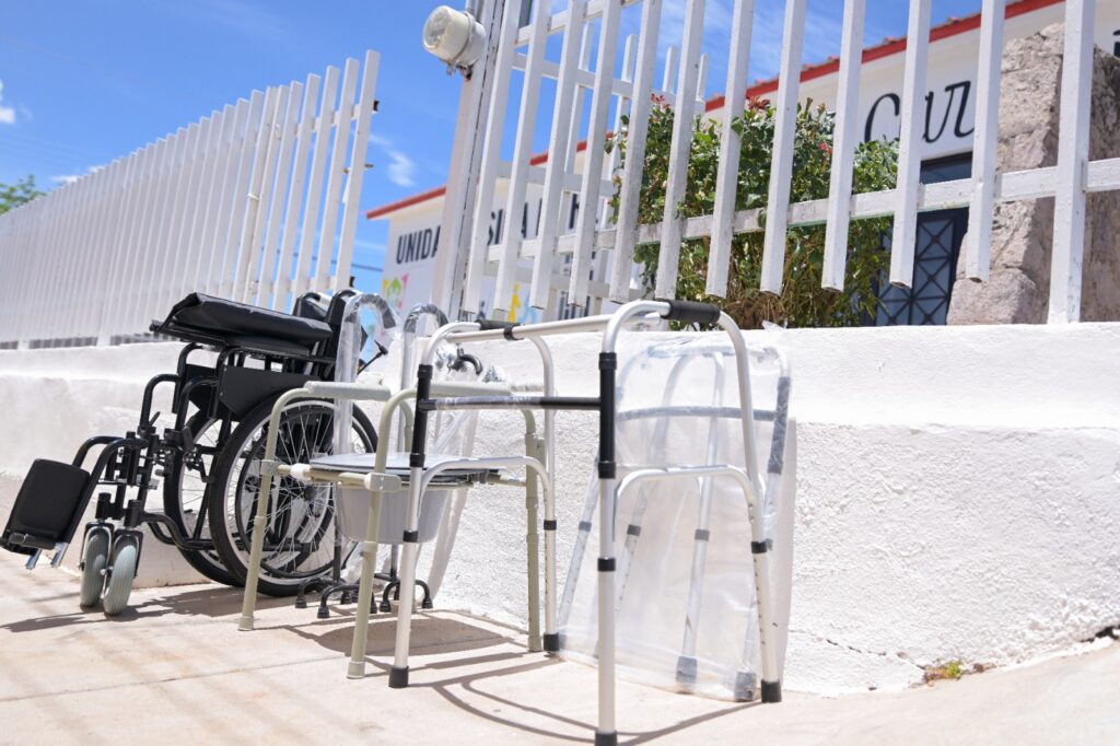 El DIF Estatal hizo una inversión estimada de 73 mil 045 pesos, para la compra y donación de equipo médico especializado como: combo de electro estimulación, mesa de tratamiento y un compresero frío. Se entregaron 7 sillas de ruedas, 5 de baño, 2 andaderas, 3 bastones de 1 punto y 3 bastones de 4 puntos, con una inversión estimada de 34 mil 250 pesos.