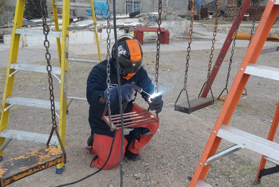 CD. JUAREZ, CHIH.- Personal de la Dirección de Parques y Jardines trabajó en la limpieza, mantenimiento y reparación del área de juegos de un parque ubicado en el cruce de las calles Boro y José María Morelos en la colonia Durango.