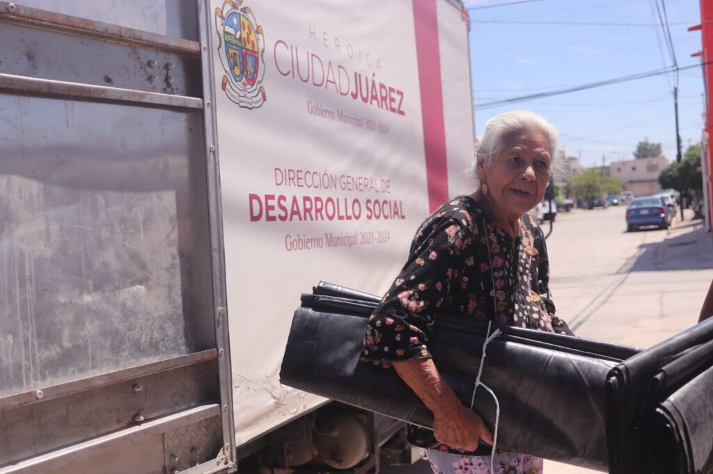 CD. JUAREZ, CHIH.- Con el fin de proporcionar apoyo a las familias para que protejan sus viviendas en esta temporada de lluvias, personal de la Dirección General de Desarrollo Social acudió a algunas colonias en distintos puntos de la ciudad para entregar a los residentes hule negro que sirve como protección temporal de los techos.