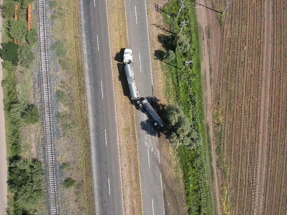 CHIHUAHUA.- Debido al derrame de combustible derivado de la volcadura de un camión cisterna, autoridades de los tres órdenes de gobierno determinaron el cierre parcial de la carretera Delicias-Camargo en su sentido de sur a norte, a la altura del kilómetro 115+100.