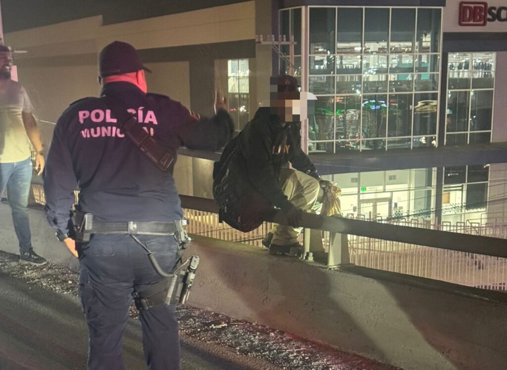 CD. JUAREZ, CHIH.-Elementos de la Secretaría de Seguridad Pública Municipal adscritos al Distrito Riveras, rescataron a un hombre que intentaba atentar contra su vida al impedir que se arrojara de un puente.