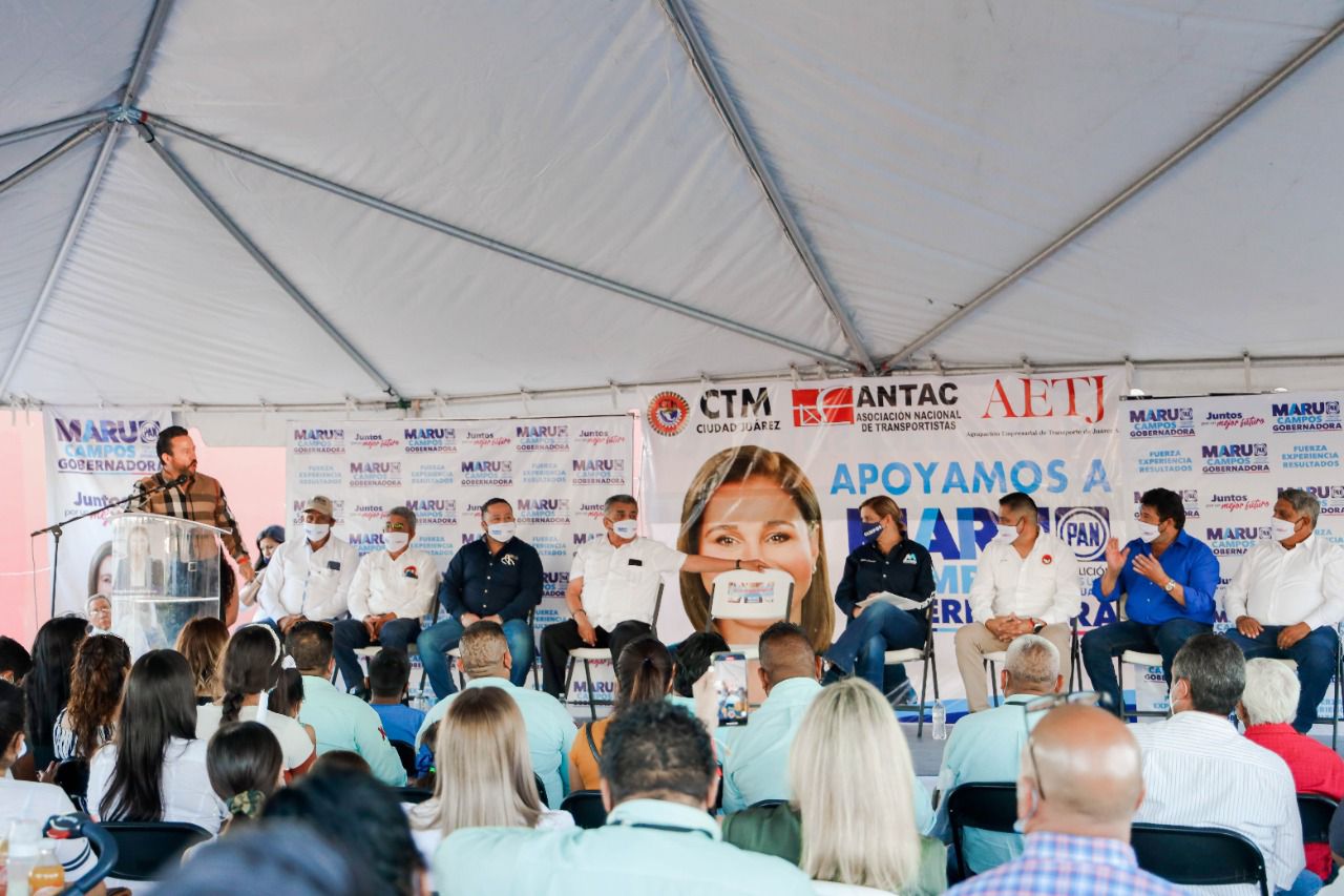 CD. JUAREZ, CHIH.- La candidata a gobernadora de Chihuahua por el PAN-PRD, Maru Campos Galván recibió el apoyo y respaldo de diversos grupos de transportistas de Ciudad Juárez y la región.