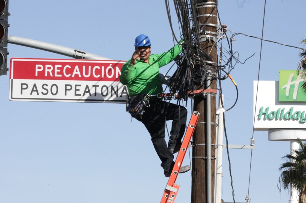 CD. JUAREZ, CHIH.- Esta semana avanzan los trabajos de retiro de cableado en desuso sobre la avenida Tecnológico, como parte del operativo que realizan de manera conjunta diversas compañías de telecomunicaciones, informó Francisco Rodríguez, director de la Administración del Desarrollo Urbano, quien acudió a supervisar las labores en representación de Claudia Morales Medina, directora general de Desarrollo Urbano.