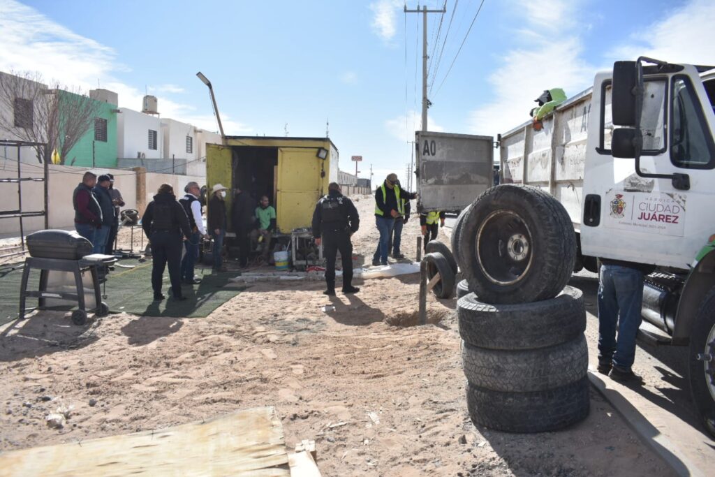 CD. JUAREZ, CHIH.- En un operativo coordinado, personal de las direcciones de Limpia y Regulación Comercial retiraron una desponchadora que operaba de manera irregular en un predio sobre el bulevar San Isidro, sitio en el que se instaló, luego de que ya lo habían desalojado de otro espacio por el bulevar Manuel Talamás Camandarí.