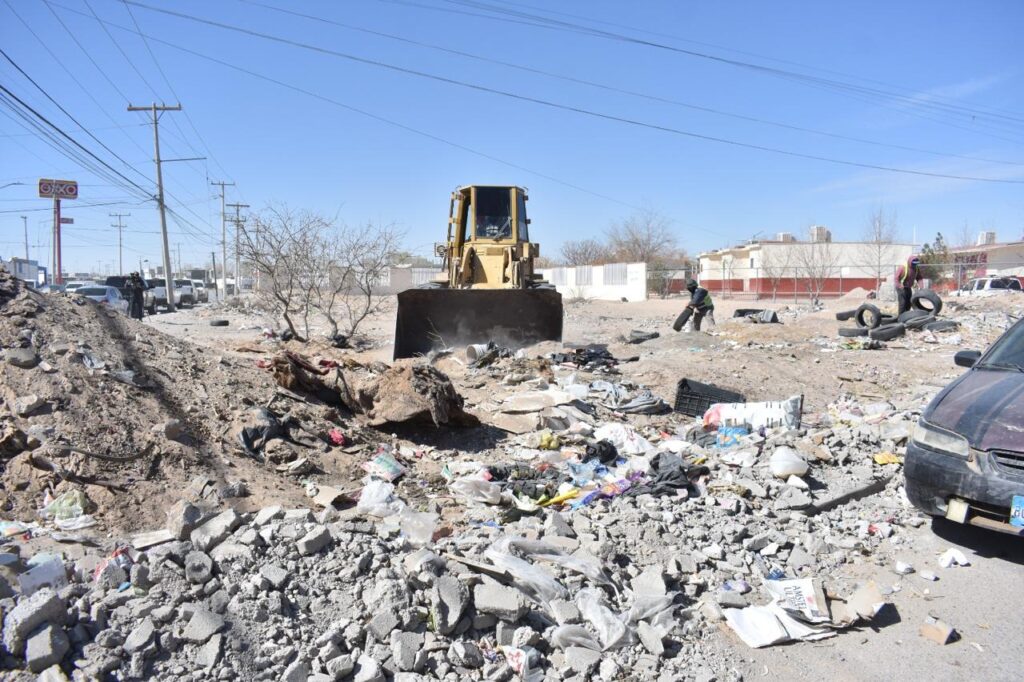 CD. JUAREZ, CHIH.- La Dirección de Limpia, a través de su titular Gibran Solís Kanahan, informó que en el operativo de reordenamiento urbano, realizado esta semana en la colonia Cerradas del Parque, se retiraron 23 toneladas de basura entre llantas, tiliches y escombro.