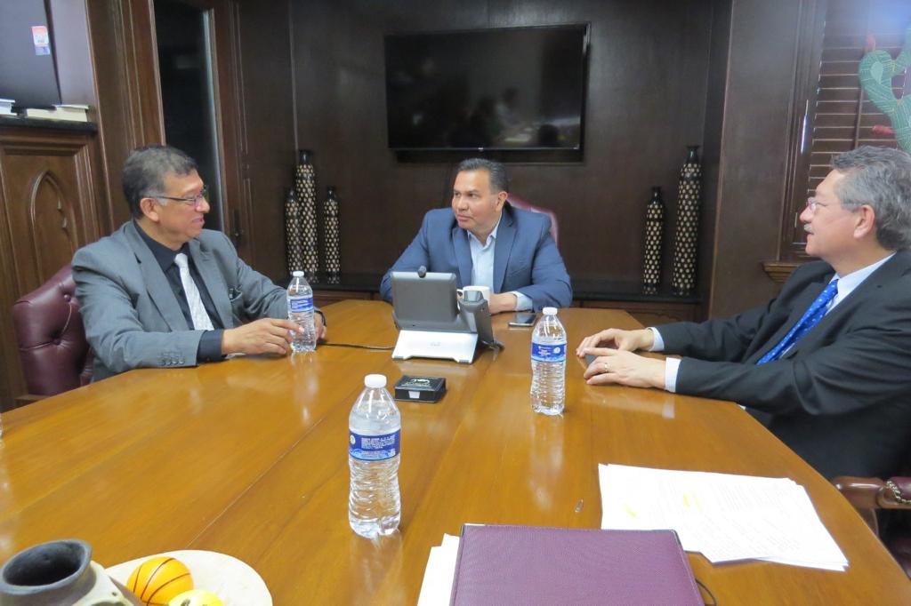 CD. JUAREZ, CHIH.- El Secretario de Comunicaciones y Obras Públicas y el representante del Gobierno del Estado en la frontera, se reunieron con el Presidente Municipal de Ciudad Juárez, con la intención de supervisar los avances actuales de obra y empezar a coordinar los proyectos que contempla el Plan Estatal de Desarrollo para la frontera durante este año y el siguiente.