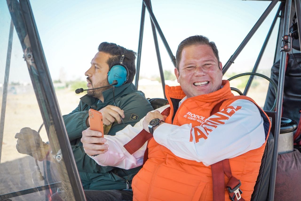 Este día en un predio ubicado en el crucero de las avenidas Teófilo Borunda y Paseo de la Victoria, “El Güero” subió al Zeppellin y desde las alturas observó la ciudad y cuando bajó dijo que desde lo alto puede “supervisarse” muy bien la ciudad.
