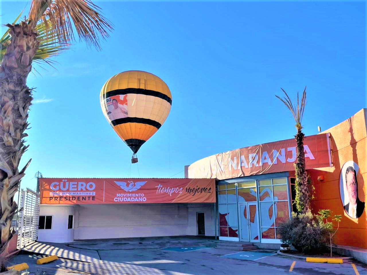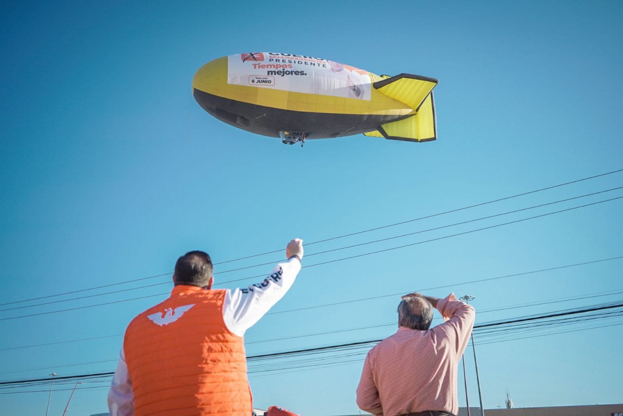 CD. JUAREZ,, CHIH.- El vuelo del Zeppelin y los globos aerostaticos de la campaña de “El Güero Martínez candidato a la presidencia municipal de Juárez por Movimiento Ciudadano, es un espectáculo que llama la atención de muchos juarenses.