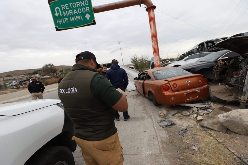 CD. JUAREZ, CHIH.-Como parte de las acciones para mantener una ciudad ordenada, la Dirección General de Servicios Públicos Municipales, a través de la Dirección de Limpia, llevó a cabo un Operativo de Reordenamiento Urbano en dos “yonkes” ubicados en el poniente de la ciudad, mismos que están generando riesgo para los empleados y personas que circulan por ahí.
