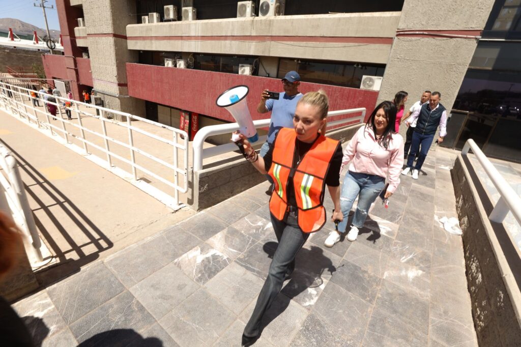 CIUDAD JUAREZ, CHIH.- Con el objetivo de contar con la preparación para saber cómo actuar ante un sismo, la administración municipal llevó a cabo un simulacro de sismo en la Unidad Administrativa “Lic. Benito Juárez”.
