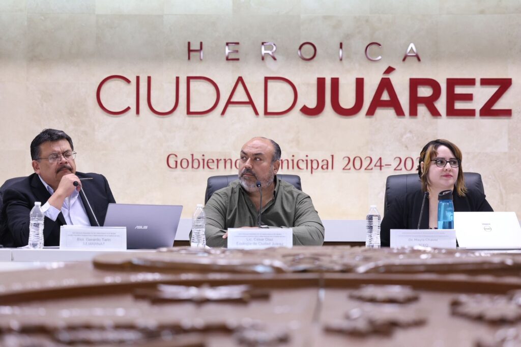 CD. JUAREZ, CHIH.- El efecto de los movimientos comerciales en el medio ambiente y la calidad del aire en la región, son algunos de los temas que este día se abordan en la reunión del Comité Consultivo Conjunto (CCCJAC) para la Mejora de la Calidad del Aire en Ciudad Juárez, El Paso, Texas y el Condado de Doña Ana, Nuevo México, evento que se lleva a cabo en la sala Francisco I. Madero, de la Unidad Administrativa Lic. Benito Juárez (presidencia municipal).