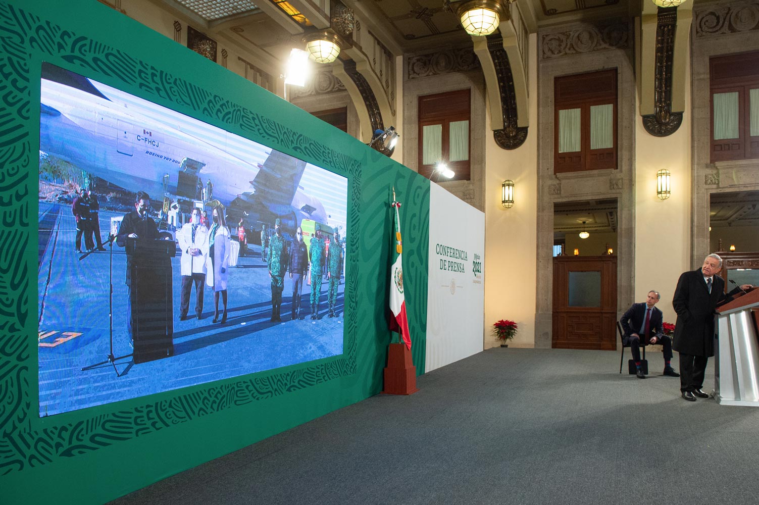 En el Aeropuerto Internacional de la Ciudad de México, los secretarios de Salud, Jorge Alcocer Varela; de Relaciones Exteriores, Marcelo Ebrard Casaubon y de Marina, José Rafael Ojeda Durán, y el director del Instituto de Salud para el Bienestar, Juan Ferrer Aguilar, atestiguaron la llegada de las vacunas para el personal de salud.