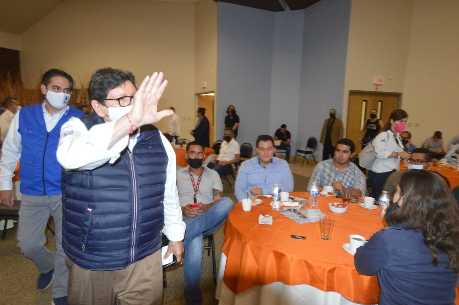 En la reunión dirigida por el presidente del colegio Juan José Díaz Ortiz, el candidato mencionó que las obras públicas del gobierno que encabezará serán efectuadas por miembros de esa agrupación local.