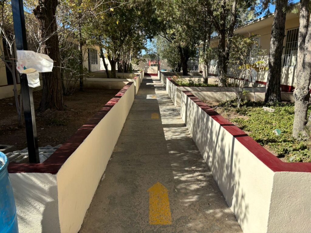 “Nos da gusto entregar la obra, hemos intervenido en más de 500 escuelas públicas en Juárez y esto surgió en la pandemia, luego se convirtió en programa de Gobierno porque la niñez y juventud es el tesoro más grande que tenemos y sí hay un cambio en los niños cuando su escuela está mejor”, señaló.