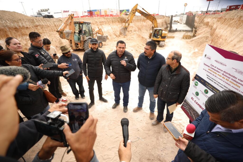 El alcalde señaló que con el nuevo Distribuidor Vial Talamás Camandari y el bulevar Independencia, los conductores ahorrarán más de 40 minutos en los traslados de ida y regreso, por lo que son obras de gran impacto para la gente que habita en esa área de la ciudad, para la fuerza laboral y para la industria que trae a esta frontera a visitantes de otras partes del mundo.