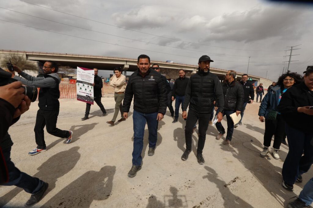 CD. JUAREZ, CHIH.– El Presidente Municipal, Cruz Pérez Cuéllar, hizo un recorrido por las obras del Distribuidor Vial Talamás Camadari y por el bulevar Independencia, mismas que llevan un avance del 35 y 40 por ciento, respectivamente.