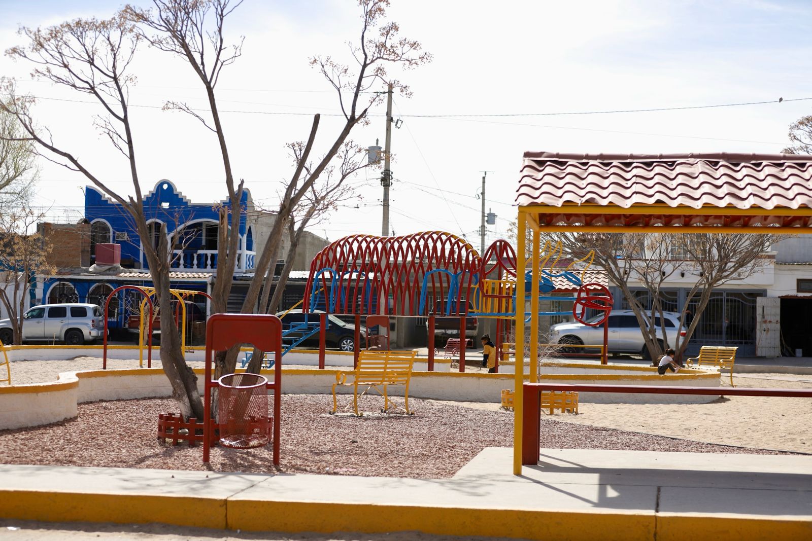 CD. JUAREZ, CHIH.- El Presidente Municipal, Cruz Pérez Cuéllar, supervisó los trabajos de rehabilitación del parque ʺSor Juana Inésʺ, el cual está ubicado en la calle Soneto 148, de la colonia Sor Juana Inés.