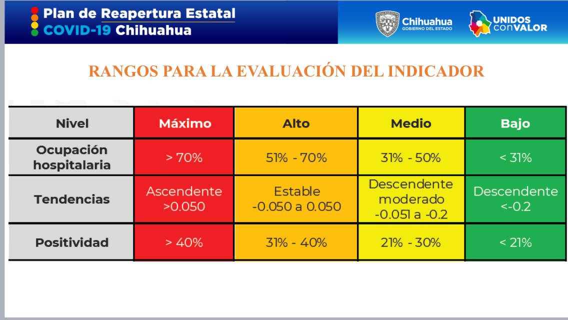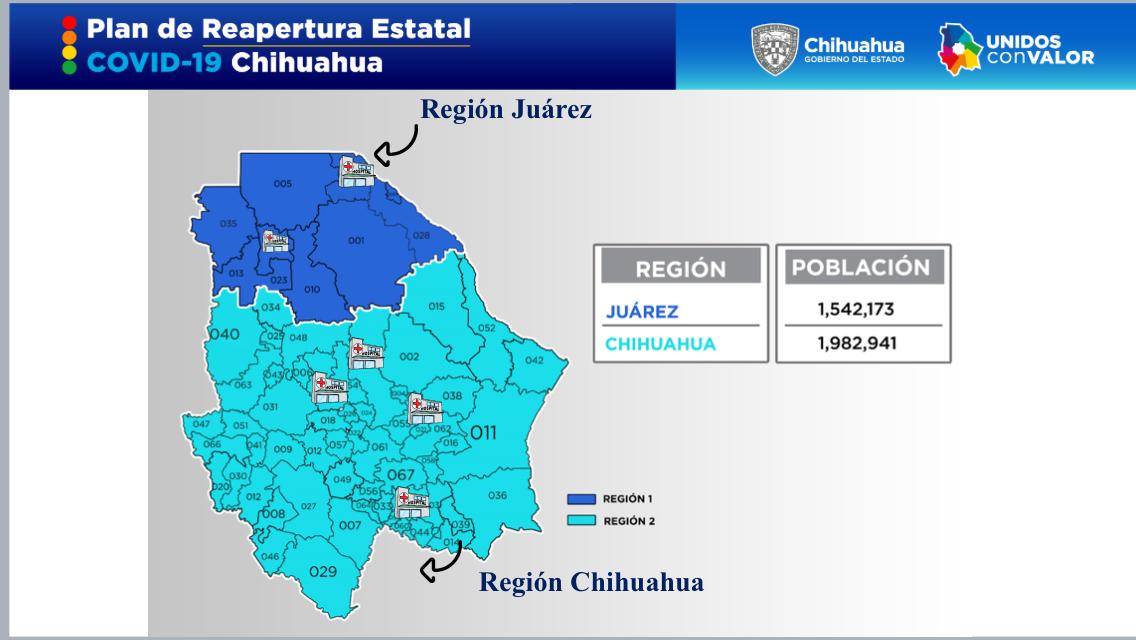 La Región 2 Chihuahua, que agrupa a la capital y otros 56 municipios del estado, se mantendrá en color naranja, como se definió desde la semana pasada.