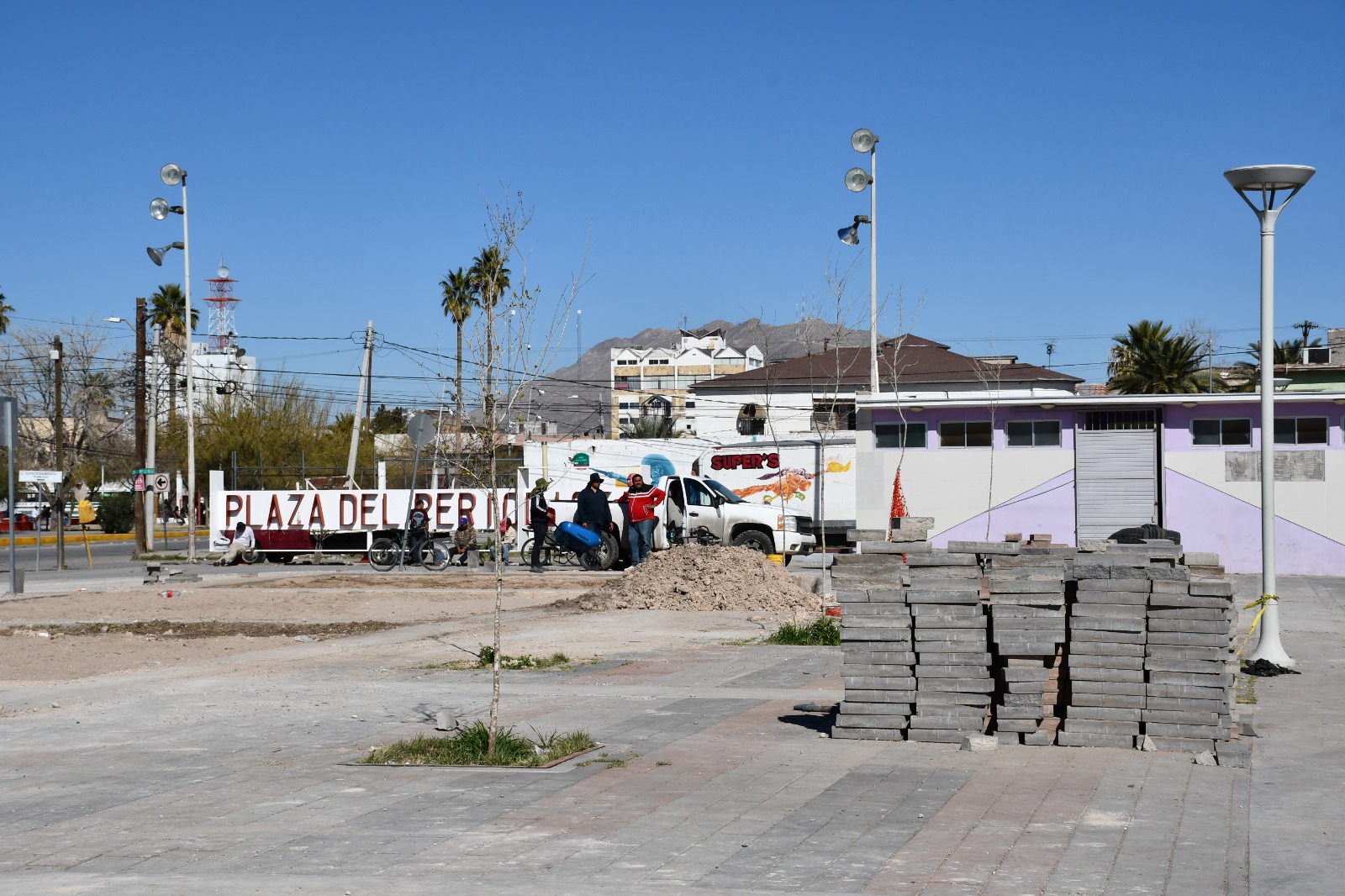 CD. JUAREZ, CHIH.- La Dirección General de Obras Públicas del Municipio informó que siguen con los trabajos de rehabilitación en la Plaza del Periodista, los cuales actualmente presentan un avance del 20%, como parte del proyecto de mejoramiento de este espacio emblemático de la ciudad, situado en la esquina de la avenida Insurgentes y calle Constitución.