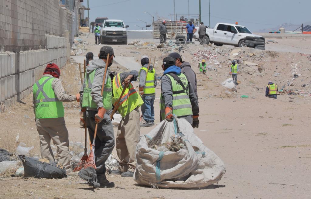 CD. JUAREZ, CHIH.- Más de ocho toneladas de basura, nueve de tiliches, tierra de arrastre y cerca de 500 llantas recogieron empleados de la Dirección de Limpia en las calles y lotes baldíos de las colonias Tierra Nueva y Portal del Roble, durante los últimos días.