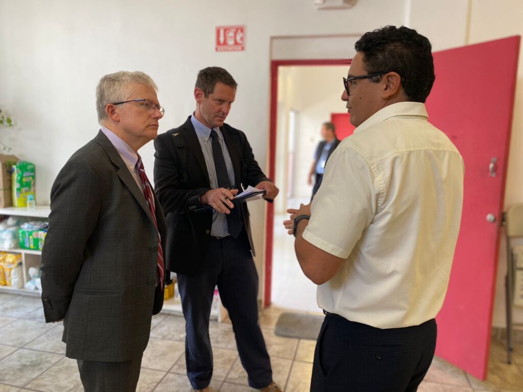 CD. JUAREZ, CHIH.- El recién nombrado Cónsul General de los Estados Unidos en Ciudad Juárez, Rafael Foley, así como representantes de la Sociedad Hebrea de Ayuda al Inmigrante, Word Vision, Fondo de las Naciones Unidas para la Infancia (UNICEF), la Organización Internacional para las Migraciones y funcionarios del Departamento de Estado en Washington, hicieron hoy una visita al albergue Enrique ‘’Kiki Romero’’.
