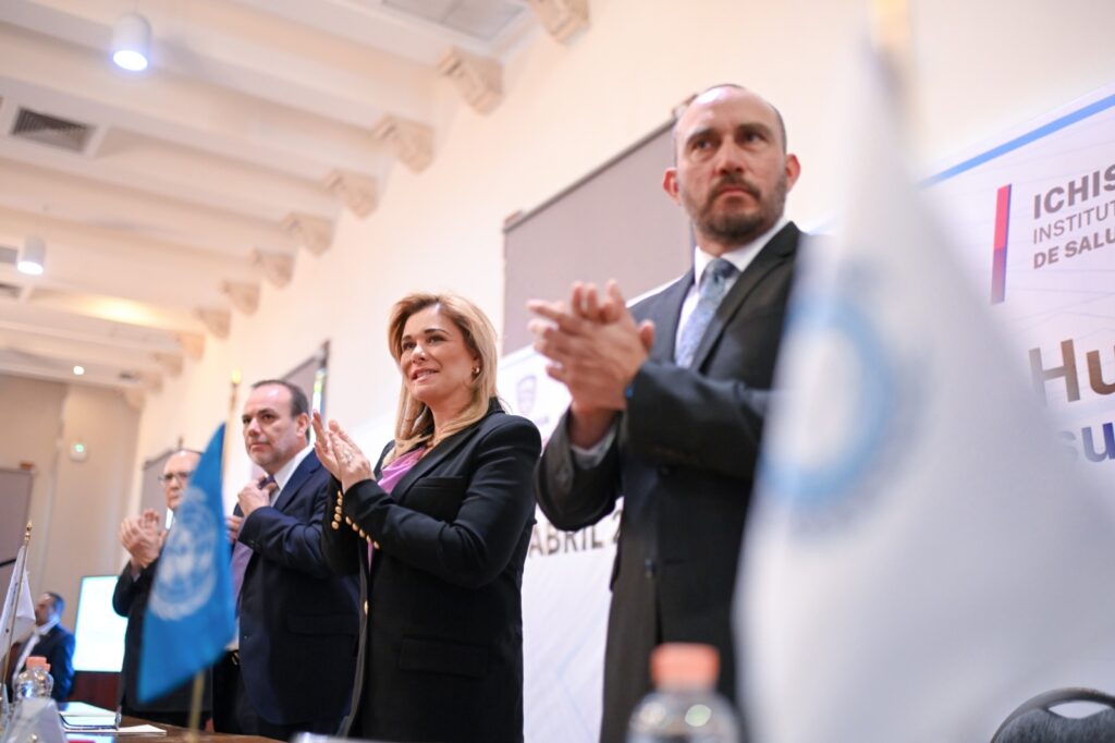 En este acto se contó con la presencia de Alejandro Águila Tejeda, fundador y director general del Instituto Hispanoamericano de Suicidiología; Manuel Terrazas Ramos, comisionado presidente estatal de la Comisión Iberoamericana de Derechos Humanos Capítulo Chihuahua; Javier González Herrera, comisionado estatal de Atención a las Adicciones y director del Instituto Chihuahuense de Salud Mental; Víctor Hugo Gutiérrez Yáñez, comisionado presidente nacional de la Comisión Iberoamericana de Derechos Humanos; y Gilberto Baeza Mendoza, encargado del Despacho de la Secretaría de Salud.