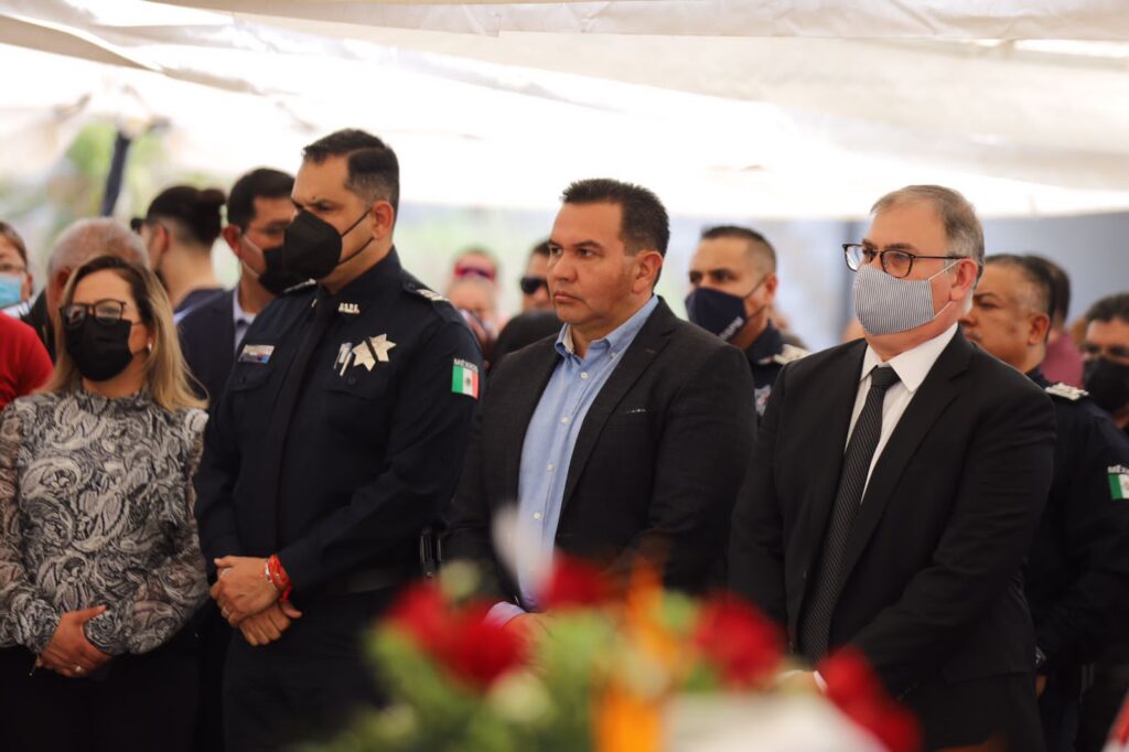 Durante el homenaje a los tres elementos, estuvo el secretario de Seguridad Pública Municipal, César Omar Muñoz Morales; el coordinador Estatal de la Guardia Nacional en el Estado de Chihuahua, Víctor Fernández Mondragón; el secretario de Seguridad Pública Estatal, Gilberto Loya Chávez; y el delegado federal en el estado, Juan Carlos Loera de la Rosa, entre otras autoridades de los tres órdenes de gobierno.