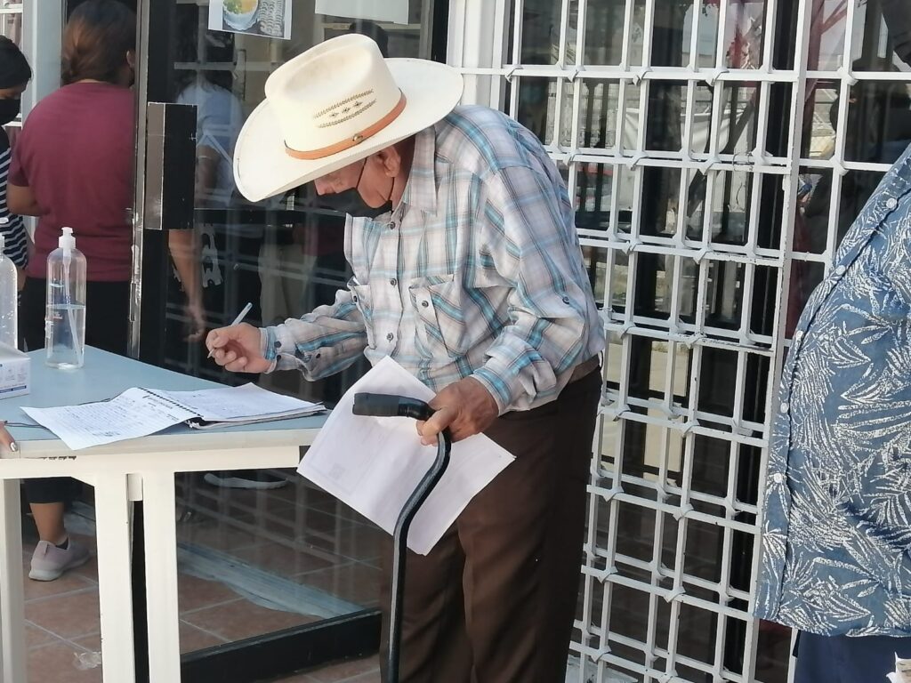 CD. JUAREZ, CHIH.- Acompañado de su nieto, don Miguel Ríos, de 77 años de edad, fue una de las personas que acudió temprano a votar por los tres proyectos que considera necesarios.